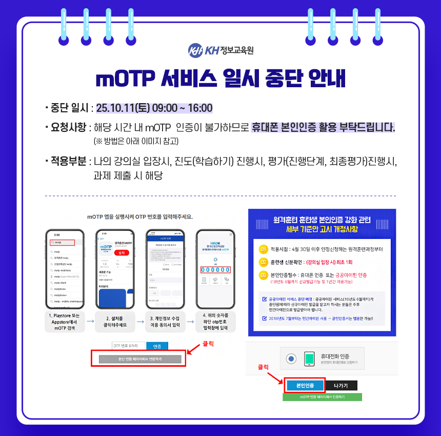 ※ 자부담금(본인부담금) 10%는 고용24에서 수강신청 후 국민내일배움카드로 결제부탁드립니다.